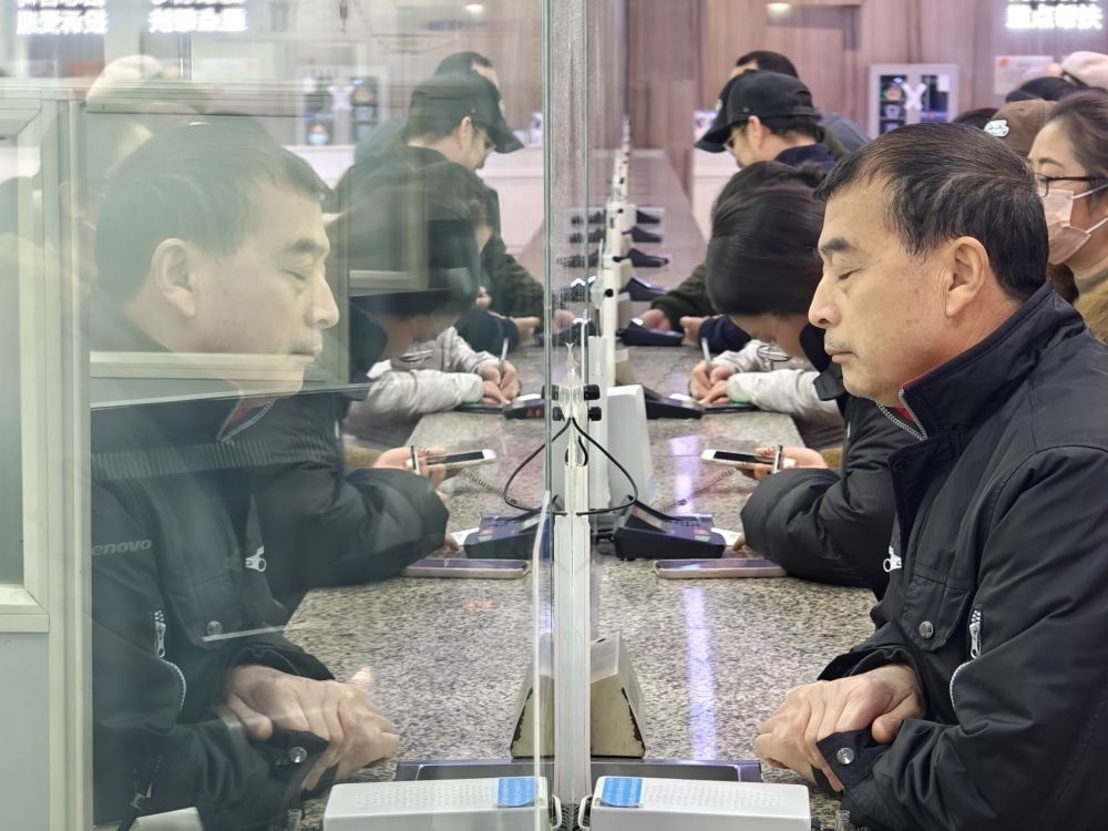 呂興明(左二)正在售票窗口購票。新華社記者 謝佼 攝