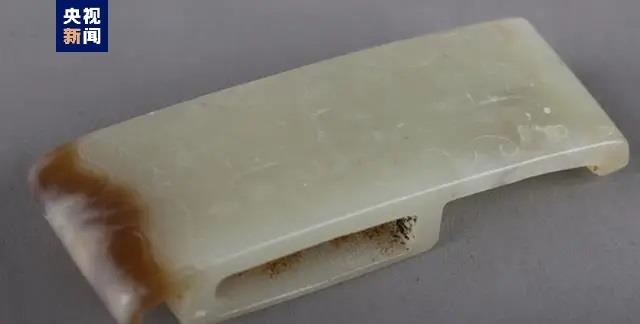 在M1的120余件出土器物中,還有制作精美的銅包金牌飾、金“五朱”等裝飾品,以及色澤瑩潤的玉帶鉤、玉劍璏(固定在劍鞘上,供穿系革帶以聯(lián)結(jié)腰間的器物)等玉器。不過,根據(jù)玉帶鉤、玉劍璏的樣式,考古工作者判斷,它們并非當(dāng)時的器物,而是戰(zhàn)國時期的物件,有可能是墓主人的“傳家寶”。