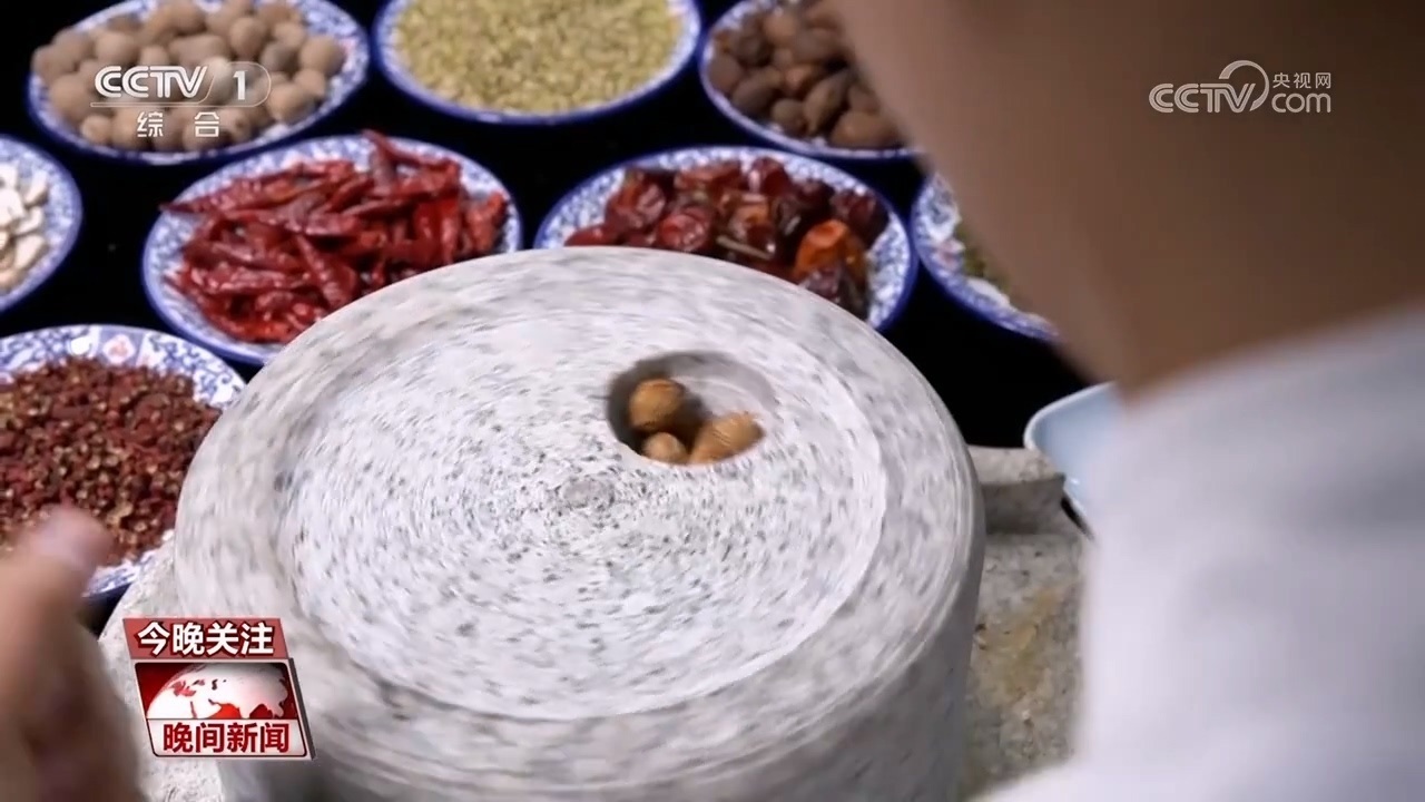 經(jīng)過(guò)傳統(tǒng)石磨碾制的料包,散發(fā)出獨(dú)特的香味。劉超群發(fā)現(xiàn),隨著生活水平越來(lái)越好,人們對(duì)口味的要求也越來(lái)越高,因此他更要嚴(yán)選食材。比如,雞肉必須得是散養(yǎng)的溜達(dá)雞,吃起來(lái)肉質(zhì)更緊致、鮮嫩。此外,劉超群還不斷嘗試,在湯底中加入中藥材,形成獨(dú)家的口味和配方。