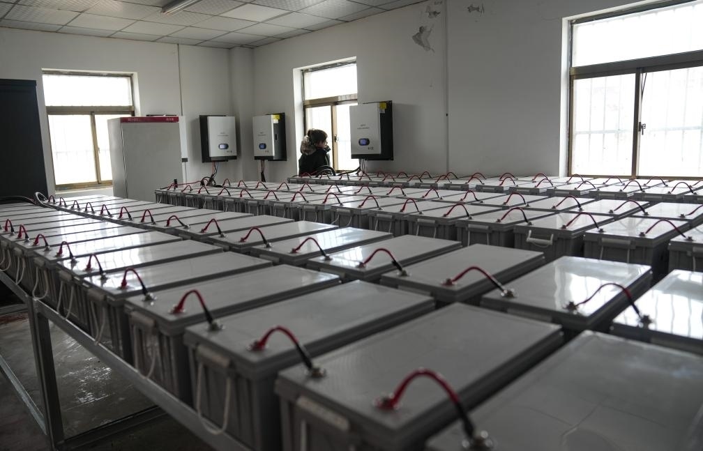 聶榮縣銅龍村工作人員在查看光伏蓄電池工作狀態(tài)(1月29日攝)。 新華社記者 晉美多吉 攝