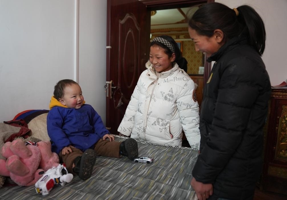 今年冬天,桑措家里的每個臥室里都安裝了電暖氣片,兩個孫女在自己的房間里寫作業(yè)也不怕被打擾。桑措的丈夫在另一個房間里抱著10個月的孫子。桑措說:“全家人再也不用圍著牛糞爐子,擠在客廳里睡覺了,家里也更加干凈整潔?!?/p>
