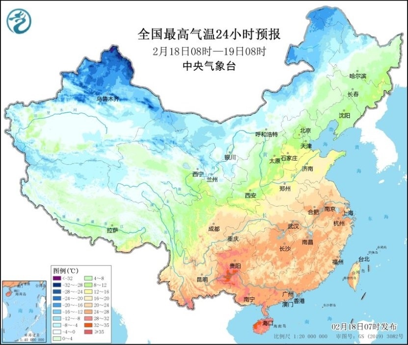 預(yù)計(jì)2月18日08時至20日08時,新疆南疆盆地、內(nèi)蒙古大部、西北地區(qū)東部、華北北部、東北地區(qū)、黃淮、江淮、江漢、江南北部等地將降溫6~10℃,其中,南疆盆地西部、內(nèi)蒙古大部、東北地區(qū)大部等地降溫12~16℃,局地可達(dá)18℃以上。