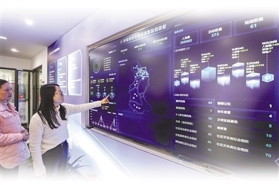 古蕩街道民生綜合體內(nèi),市民使用智慧屏查看民生綜合體相關(guān)情況。本報(bào)記者 江 南攝