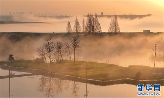 3月20日清晨,在安徽省池州市,薄霧輕籠下的秋浦河,如夢(mèng)似幻,與若隱若現(xiàn)的村莊、高鐵構(gòu)成一幅流動(dòng)的水墨畫卷。
