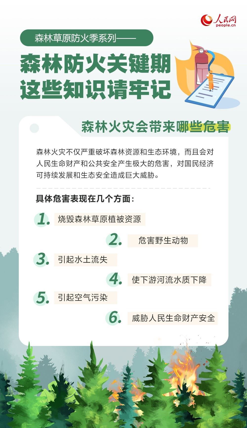 春季氣溫回升,風(fēng)干物燥,是森林草原火災(zāi)的高發(fā)期。森林火災(zāi)會帶來哪些危害? 如何防范森林火災(zāi)?一起來了解。