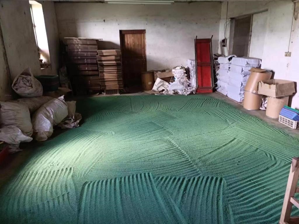 地上綠色物品是廣西靈山縣某偽劣獸藥生產(chǎn)廠家生產(chǎn)的偽劣獸藥。(枝江市公安局供圖)