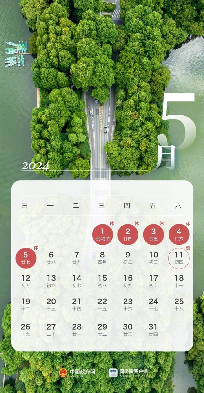 根據(jù)國務院辦公廳通知精神,2024年勞動節(jié)放假安排為:5月1日(星期三)至5月5日(星期日)放假調休,共5天。4月28日(星期日)、5月11日(星期六)上班。