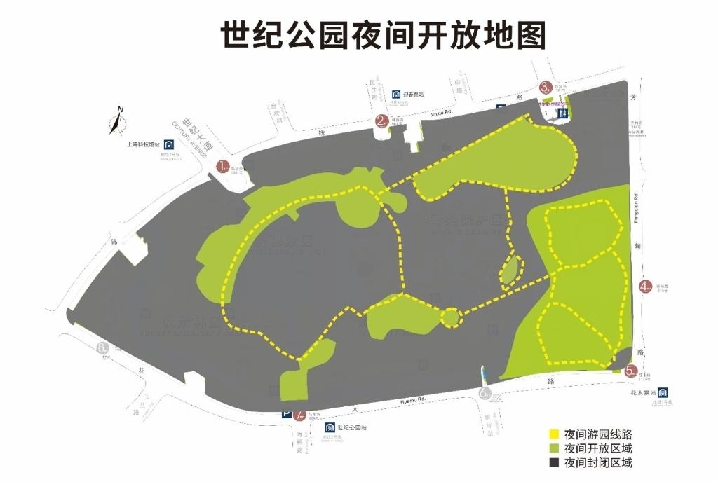 世紀(jì)公園5月1日擬實(shí)行24小時開放的區(qū)域示意圖。(園方供圖)