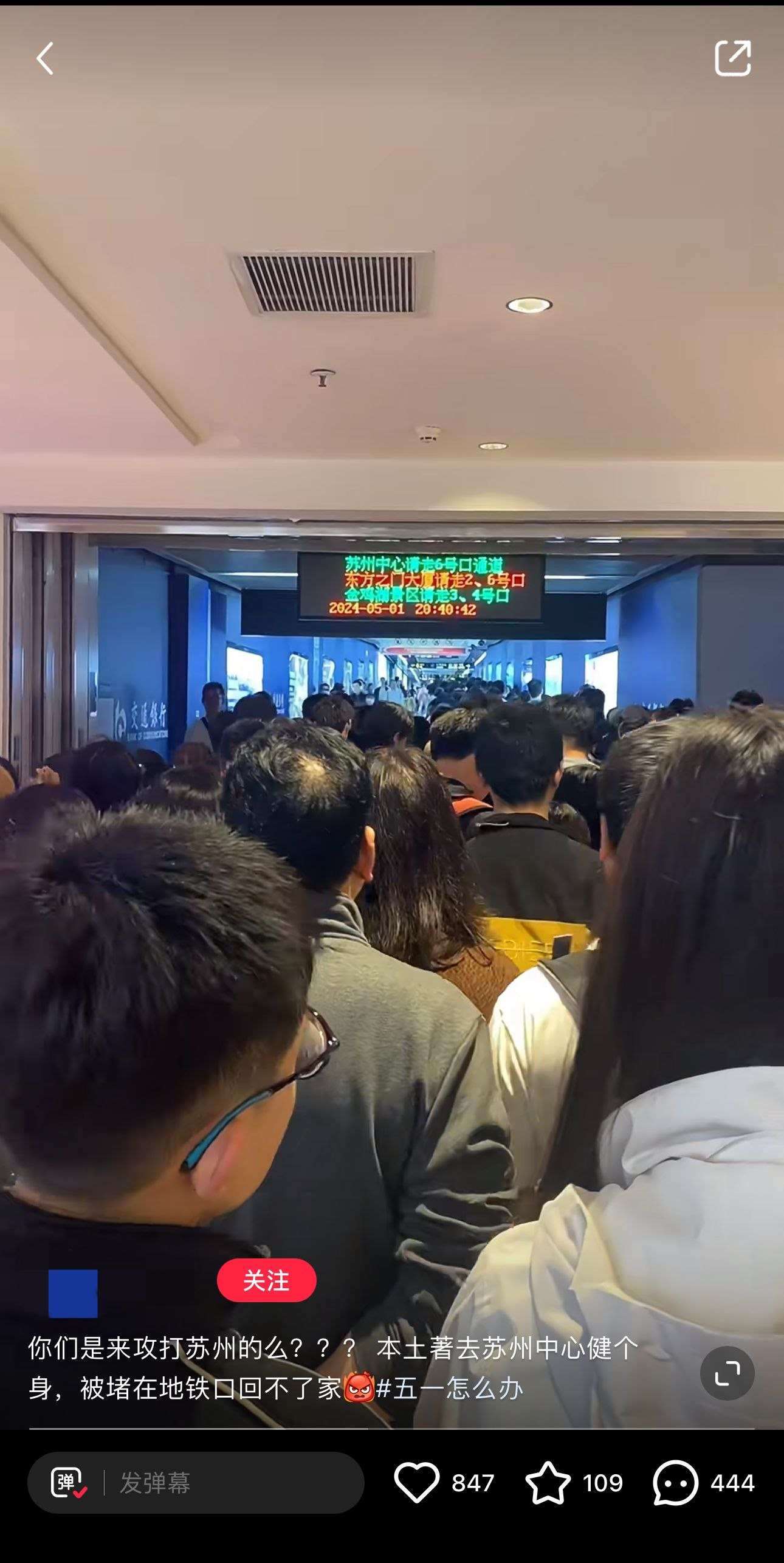 熱門旅游目的地的當地市民則“叫苦不迭”。有蘇州的網友發(fā)布視頻稱自己出門健身,被堵在地鐵口“回不了家”。