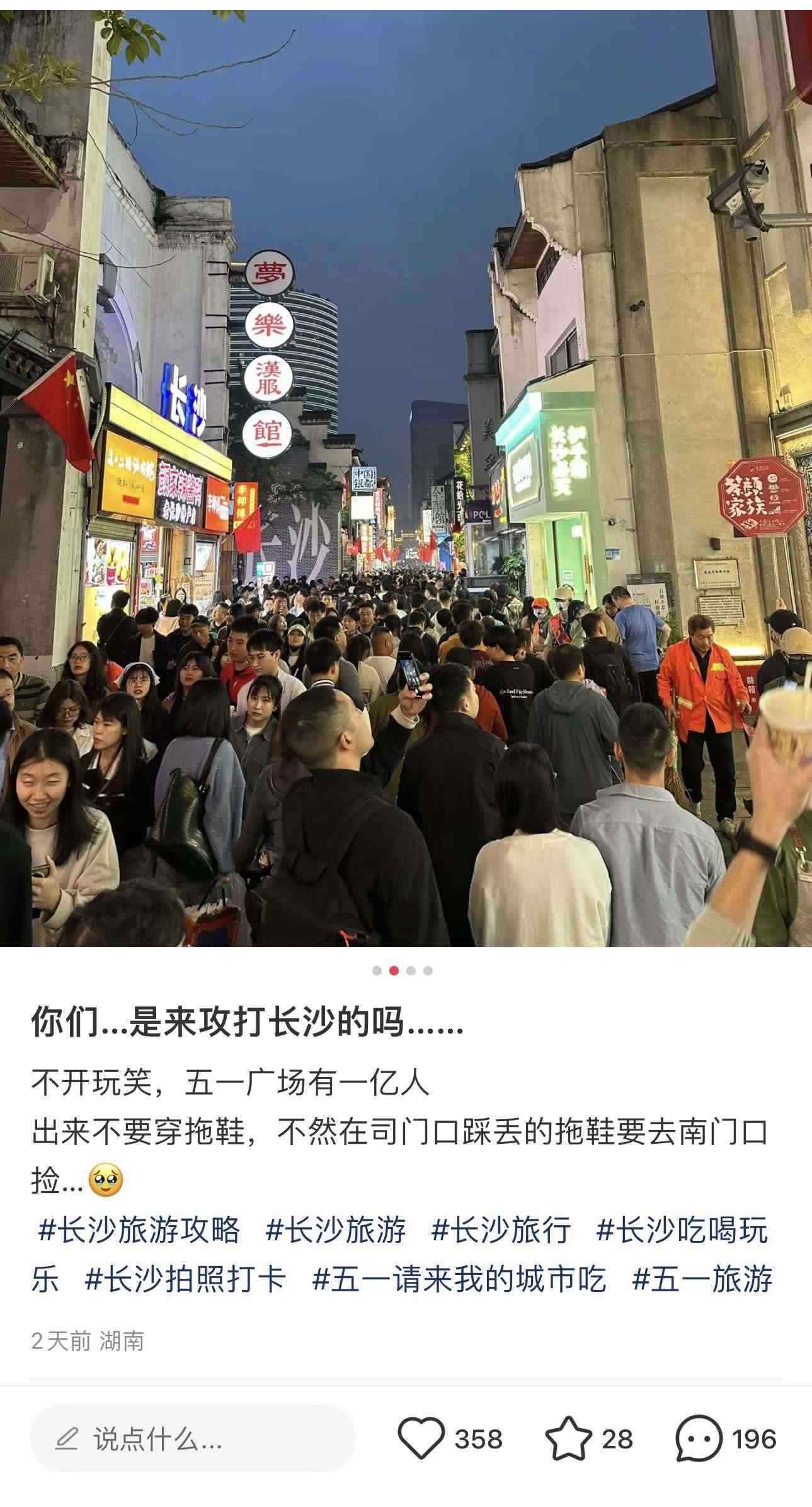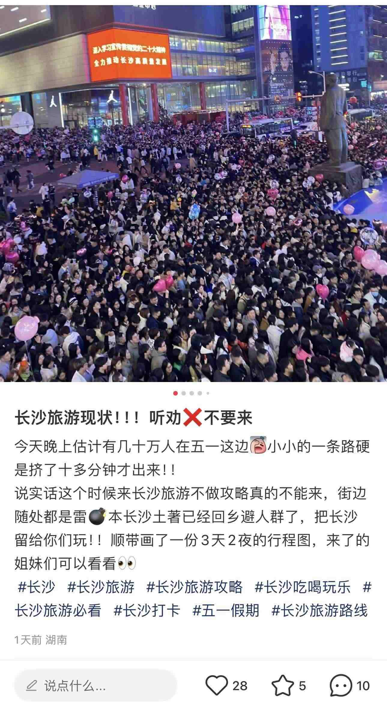 還有長沙的網友表示:“小小的一條路硬是擠了十多分鐘才出來……本長沙土著已經回鄉(xiāng)避人群了,把長沙留給你們玩!”