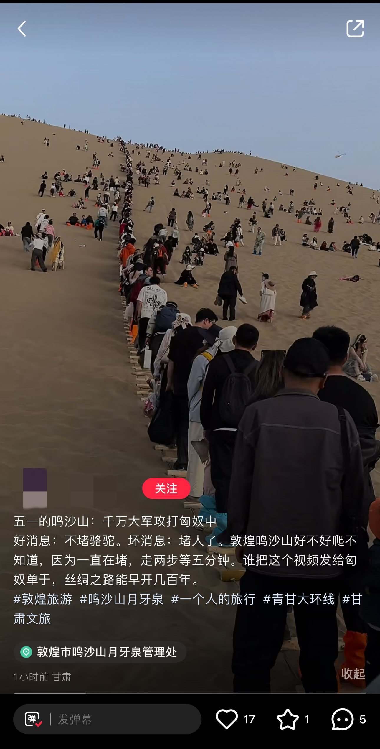 還有甘肅的網友在發(fā)布的關于敦煌鳴沙山的筆記中稱:“好消息:不堵駱駝。壞消息:堵人了……走兩步路等五分鐘。”