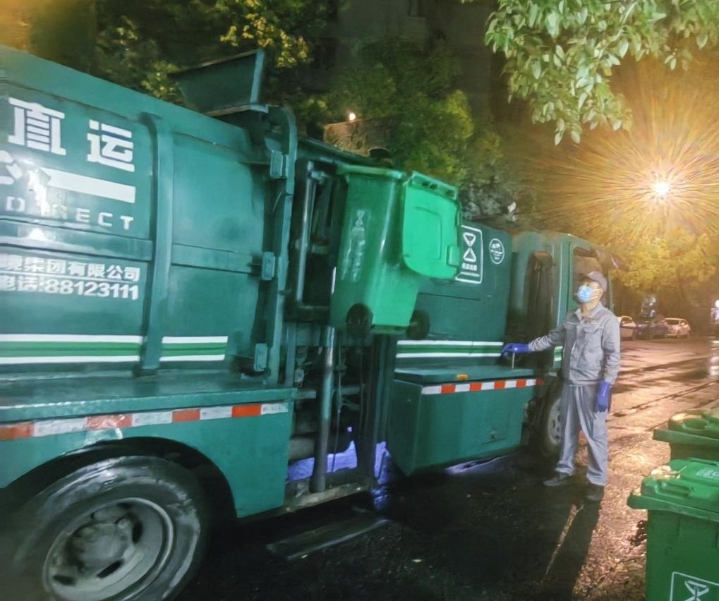 2024年5月4日凌晨,杭州市環(huán)境集團清運車駕駛員朱國棟在清運垃圾。(杭州市環(huán)境集團供圖)