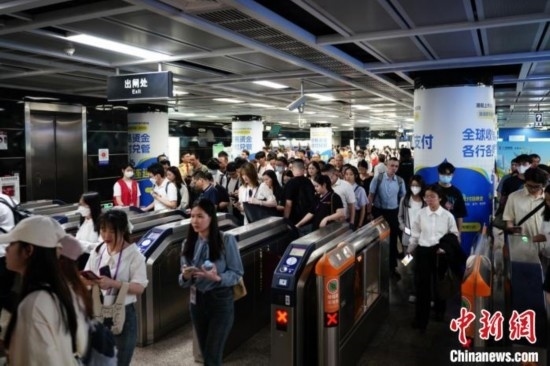 “五一”假期5天間,廣州地鐵總運(yùn)客約4500萬(wàn)人次。圖為出入地鐵站的人潮。廣州地鐵集團(tuán)供圖