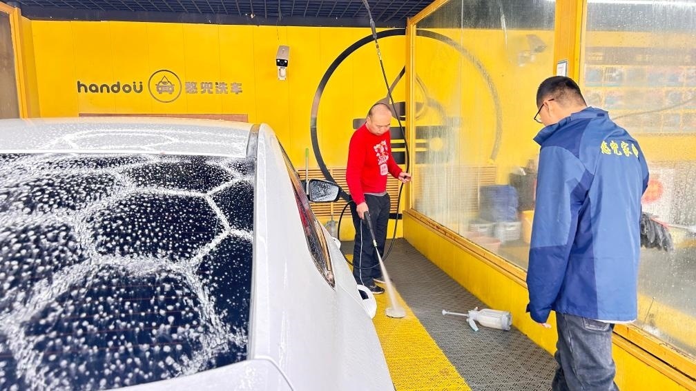 憨兜家園的員工正在洗車(chē)。新華社記者李志浩 攝