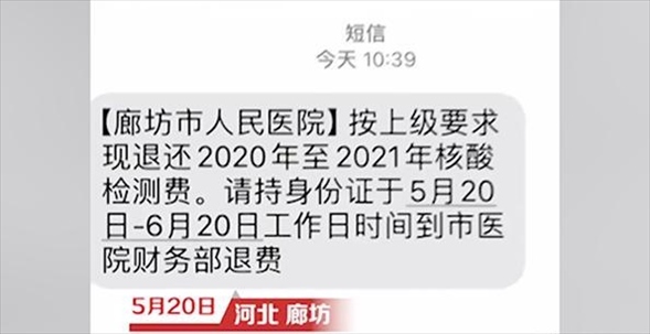 ·廊坊醫(yī)院通知“退核酸檢測費”后很多人排隊退費,院方:符合條件的才退。