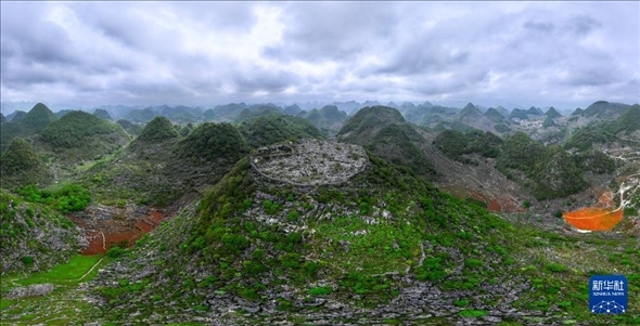 在貴州省興義市敬南鎮(zhèn)攏岸村附近有一處名為盧家營的村寨。據(jù)了解,在清代咸豐至同治年間,村寨旁的一座山頭自然崩塌后形成一大塊平面,村民們利用該平面在山頂修建防御設(shè)施抵御賊寇。如今,防御設(shè)施僅剩下部分防御營墻,留下的山頭平整如刀切,宛若“消失”的山峰,令人稱奇。