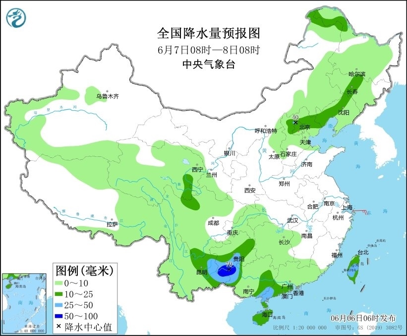 明天,內(nèi)蒙古東北部、東北地區(qū)西部、青海南部、華北北部、川西高原北部、西南地區(qū)南部、華南北部和南部、臺(tái)灣島等地部分地區(qū)有中到大雨,其中,貴州西南部、云南東南部、廣西西北部等地部分地區(qū)有暴雨(50~70毫米)。