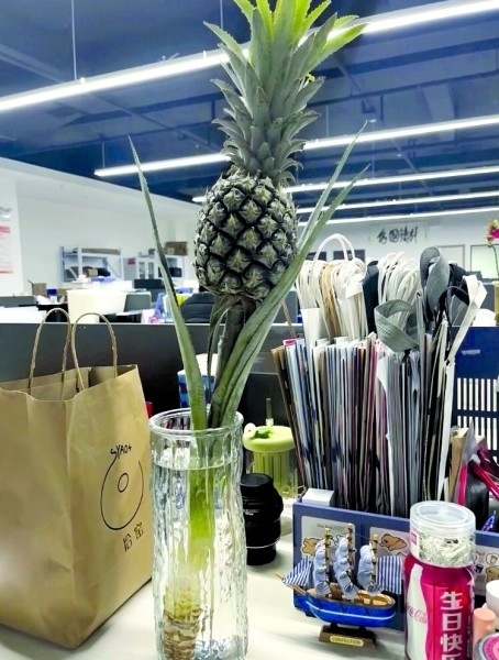 00后楊三日從事新媒體運(yùn)營工作,她在工位上養(yǎng)了一個(gè)菠蘿,“養(yǎng)菠蘿是一件很酷的事情,不僅能觀賞,還能吃,很配我特立獨(dú)行的氣質(zhì)?!彼f自從養(yǎng)了菠蘿之后,每天上班時(shí)心情就變得非常好?!拔业墓の痪拖駸釒в炅忠粯?,提前進(jìn)入了春天?!?/p>