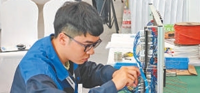 手持記號筆,目光如炬,只見軌道信號控制技術(shù)項目選手陳權(quán)(見圖,本報記者蔣雨師攝)在電路圖里精準(zhǔn)鎖定電路,將一個個接點逐一填入配線表,動作行云流水,一氣呵成。在大賽現(xiàn)場,軌道信號控制技術(shù)項目選手需要完成軌道信號設(shè)備的設(shè)計、施工、調(diào)試與檢修工作。就設(shè)計環(huán)節(jié)而言,選手們需要把上百條電路信號的轉(zhuǎn)轍機電路設(shè)計圖轉(zhuǎn)換為電路配線表,但凡有一個接點錯誤,整個電路都將出現(xiàn)問題,而這一環(huán)節(jié),陳權(quán)只花了10分鐘。