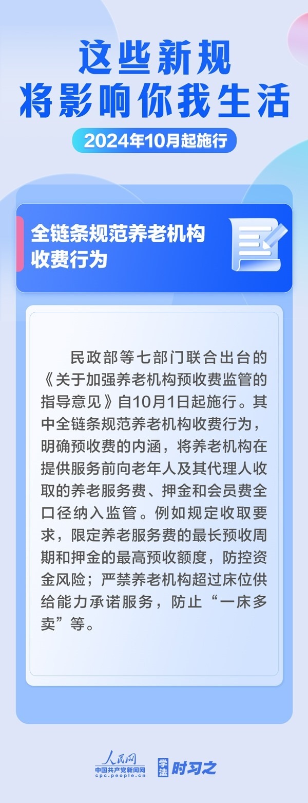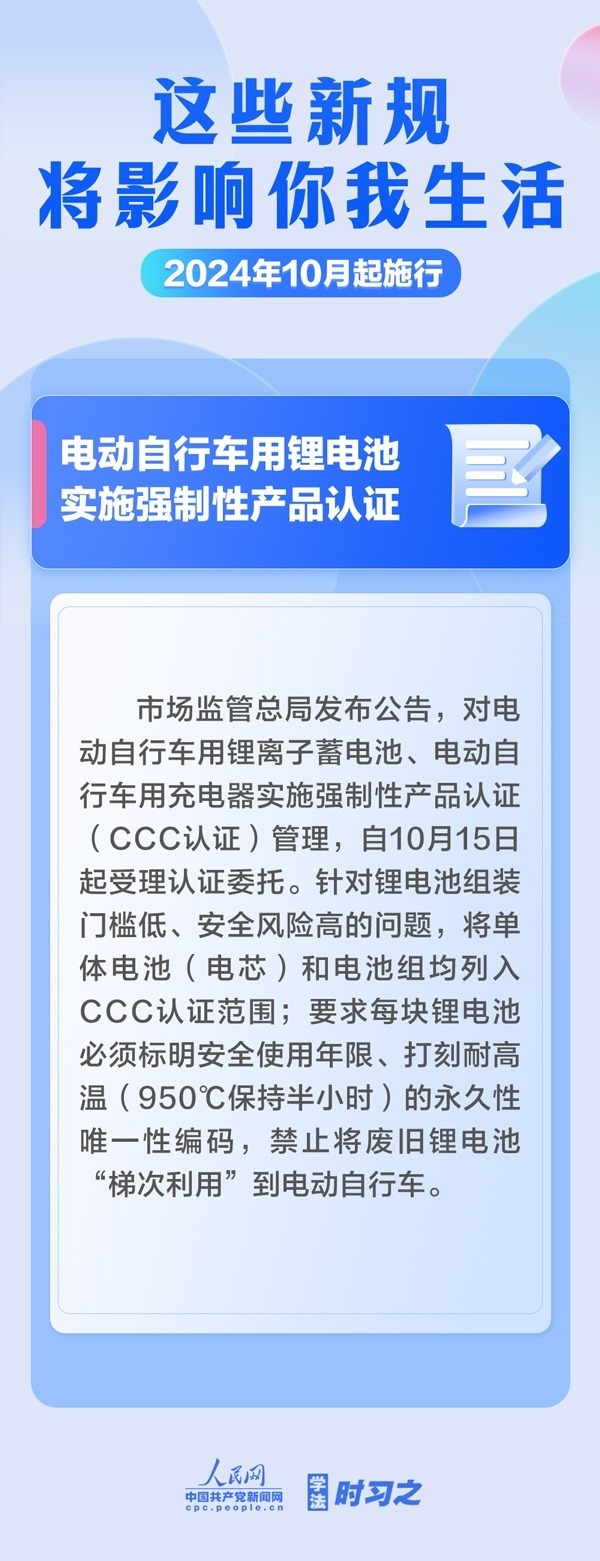 增加軍人撫恤優(yōu)待措施;全鏈條規(guī)范養(yǎng)老機(jī)構(gòu)收費(fèi)行為;電動(dòng)自行車(chē)用鋰電池實(shí)施強(qiáng)制性產(chǎn)品認(rèn)證……10月起,這些新規(guī)施行,將影響你我生活。