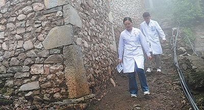 老廠鄉(xiāng)衛(wèi)生院支醫(yī)人員、醫(yī)生傲瑞遠(右)和護士何喜到村里巡診。毛 虹攝