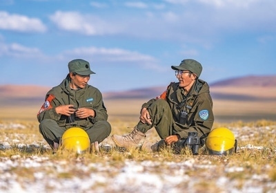 扎西羅布(右)和同事在巡護途中休息。以上圖片均為本報記者徐馭堯攝
