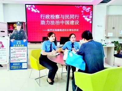 浙江省杭州市臨平區(qū)檢察院進(jìn)社區(qū)開(kāi)展“行政檢察,與民同行”主題普法宣傳活動(dòng),為居民提供法律咨詢服務(wù)。資料圖片