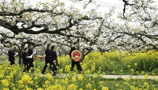 在沛縣人民法院棲山人民法庭,通過“法官工作站﹢企業(yè)需求”的形式,將企業(yè)“需求清單”變?yōu)榉ㄍァ奥穆毲鍐巍?,廣泛開展企業(yè)“法治體檢”,為轄區(qū)經(jīng)濟(jì)高質(zhì)量發(fā)展保駕護(hù)航。在邳州市人民法院鐵富人民法庭,聚焦銀杏之鄉(xiāng)產(chǎn)業(yè)特色,通過能動司法助力特色農(nóng)產(chǎn)品產(chǎn)業(yè)保護(hù),將滿地“金黃”變成富民“黃金”。在泉山區(qū)人民法院港務(wù)區(qū)人民法庭,堅持法治賦能,多維度推進(jìn)生態(tài)宜居、文明鄉(xiāng)風(fēng)建設(shè),指導(dǎo)村落制定村規(guī)民約、破除陳規(guī)陋習(xí),助力村容村貌改善提升,用“小法庭”助推鄉(xiāng)村“大振興”。