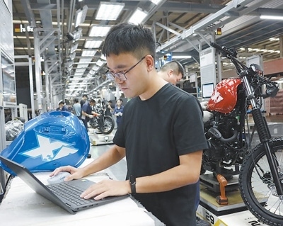 “哪個環(huán)節(jié)的裝配參數(shù)和給定值不吻合,系統(tǒng)就會自動報警,不再需要人工巡檢,效率得到大幅提升?!标悋刚f,得益于數(shù)智化生產(chǎn)線,每150秒就有一輛摩托車下線。
