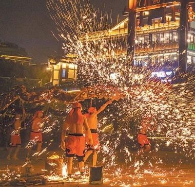豐富文旅業(yè)態(tài)磁器口古鎮(zhèn)民俗表演。 磁器口古鎮(zhèn)管委會(huì)供圖