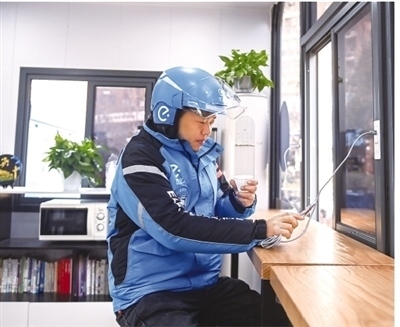 “一張床位每個月僅600多元,是市場價的1/3?!毙埵呛幽先?,在杭州從事快遞行業(yè)已有7年,如今他不僅住進了廉價且環(huán)境優(yōu)美的公寓,工作之余還能在公寓內(nèi)的“尚小驛”服務(wù)站點歇腳休息,在“小哥食堂”就餐。
