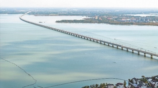 11月23日,蘇州吳江區(qū),滬蘇湖高鐵試運(yùn)行列車跨過(guò)元蕩。 袁新宇 周悅磊 攝 (視覺(jué)江蘇網(wǎng)供圖)