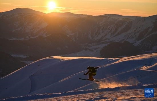 夕陽西下,滿德力在吉克普林國際滑雪度假區(qū)巡邏(12月3日攝)。