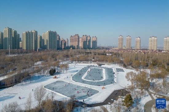 隨著2025年第九屆亞洲冬季運(yùn)動(dòng)會(huì)臨近,人們?cè)诠枮I的室外冰場(chǎng)享受冰上運(yùn)動(dòng)的快樂。