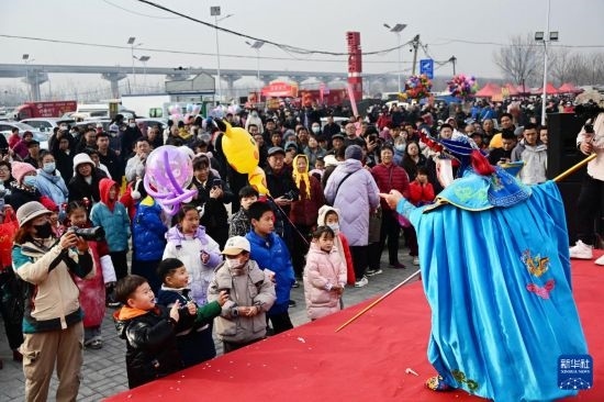 1月18日,人們?cè)诓蠢锎蠹嫌^(guān)看表演。