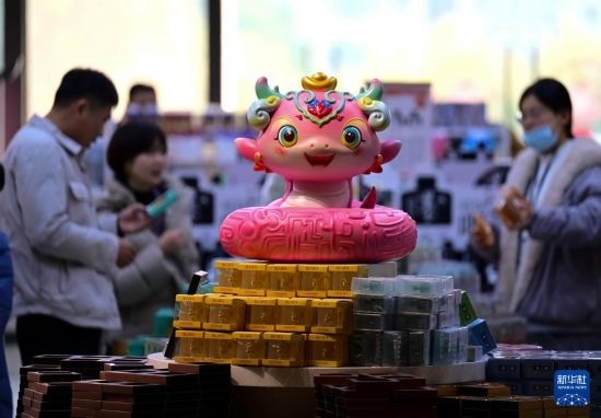 1月29日,游客在安徽博物院選購(gòu)紀(jì)念品。