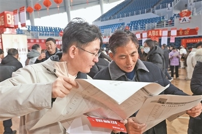 2月3日,求職者在江蘇省揚州市寶應(yīng)縣新春大型人力資源招聘洽談會上尋找就業(yè)崗位。