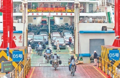 為避免造成擁堵,多部門和輪渡企業(yè)多措并舉,在距離港區(qū)5公里的地方設(shè)置查驗(yàn)點(diǎn),提前購(gòu)票、距離開船不超過兩小時(shí)的車輛,徑直通過閘機(jī)檢票后,駛往進(jìn)港待渡區(qū)域。不符合通行條件的車輛駛?cè)雽S猛ǖ离x開。