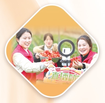 浙江省長(zhǎng)興縣畫溪街道,青年黨員干部通過網(wǎng)絡(luò)直播幫農(nóng)戶銷售新鮮草莓。