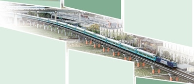 3月28日,Y471次“熊貓專列·什邡號”列車行駛在四川省成都市境內(nèi)的石羊立交橋上。