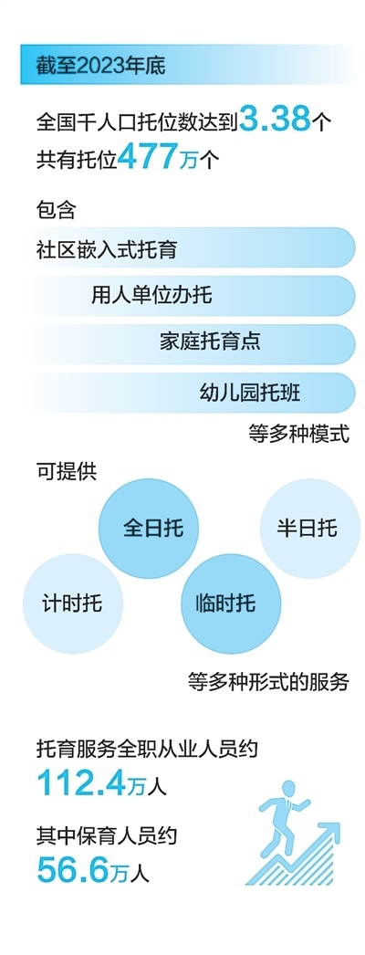 “加強(qiáng)普惠育幼服務(wù)體系建設(shè),支持用人單位辦托、社區(qū)嵌入式托育、家庭托育點等多種模式發(fā)展”,寫入黨的二十屆三中全會《決定》。前不久,中辦、國辦印發(fā)的《提振消費專項行動方案》提出,“鼓勵發(fā)展社區(qū)嵌入式托育、用人單位辦托和托幼一體服務(wù)。”