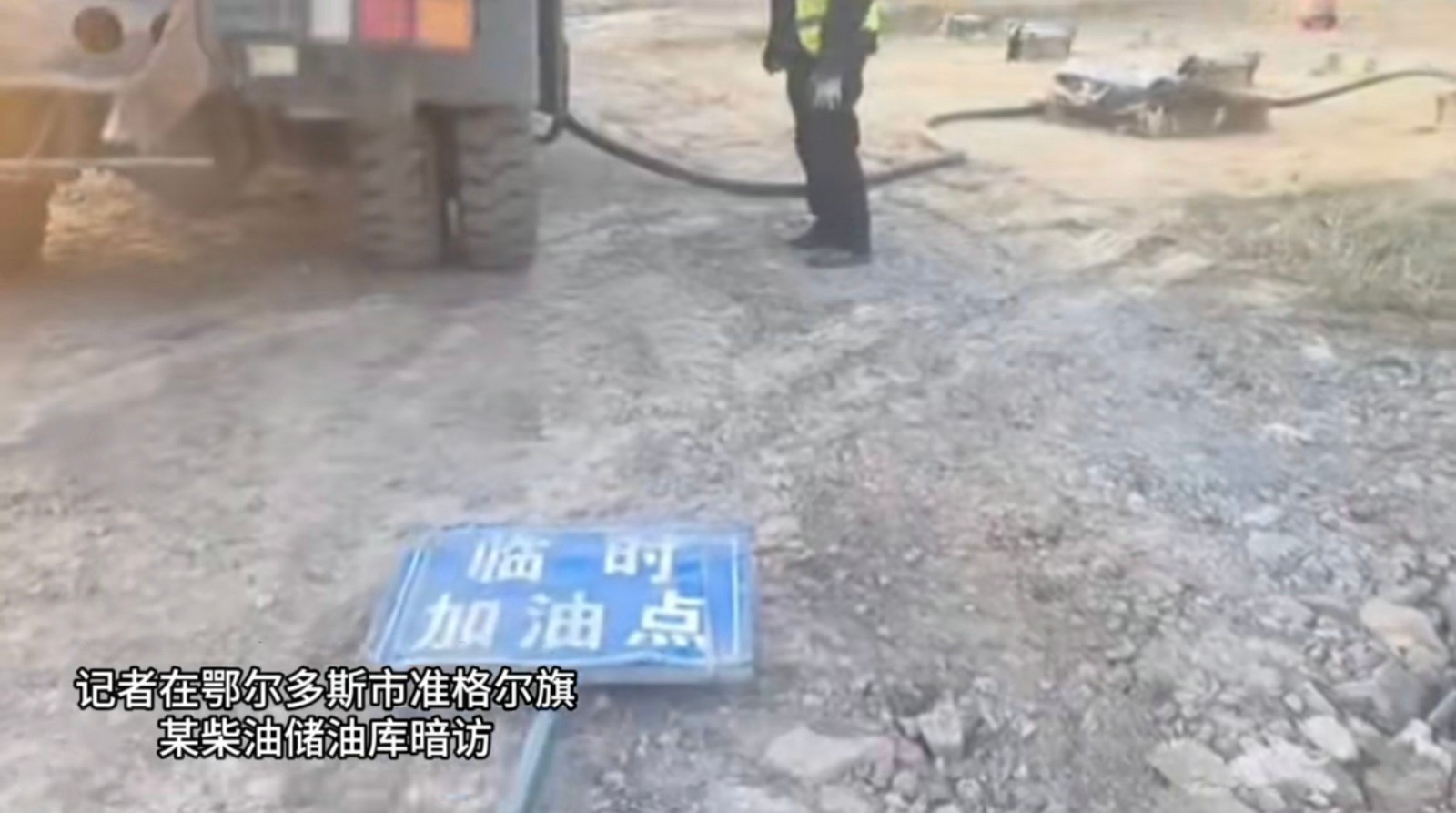然而,記者在現(xiàn)場(chǎng)暗訪時(shí)注意到,正在抽油的那輛無(wú)牌運(yùn)油車(chē)上,清晰標(biāo)注著“準(zhǔn)聯(lián)煤礦2號(hào)加油車(chē)”字樣,在現(xiàn)場(chǎng)作業(yè)的男子也承認(rèn)這里是準(zhǔn)聯(lián)煤礦的儲(chǔ)油庫(kù),這顯然與賀主任的說(shuō)法完全相悖。