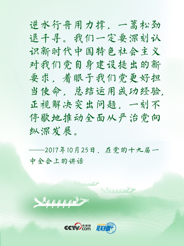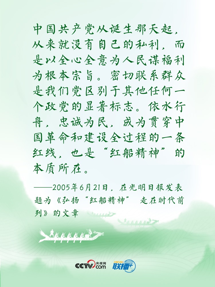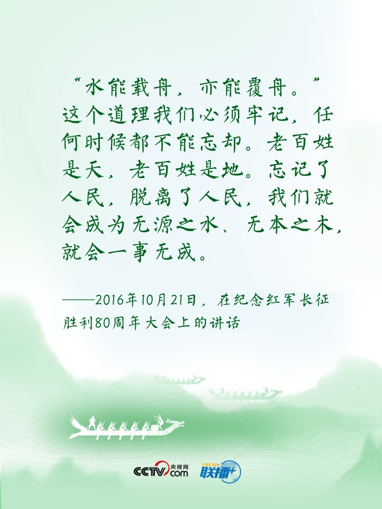 過(guò)端午,賽龍舟。龍舟這項(xiàng)傳統(tǒng)運(yùn)動(dòng),象征著中華民族的拼搏、堅(jiān)韌、團(tuán)結(jié),承載著深植在民族基因里的愛(ài)國(guó)主義之魂?!爸邸弊肿怨乓詠?lái)在中華傳統(tǒng)文化中都有著深刻寓意?!耙浪兄?,忠誠(chéng)為民”“逆水行舟,不進(jìn)則退”......習(xí)近平總書(shū)記曾多次以“舟”為喻闡釋思想,寄情言志。央視網(wǎng)《聯(lián)播+》特進(jìn)行梳理,讓我們沿著總書(shū)記指引的方向,團(tuán)結(jié)奮進(jìn),砥礪前行?! ?/p>