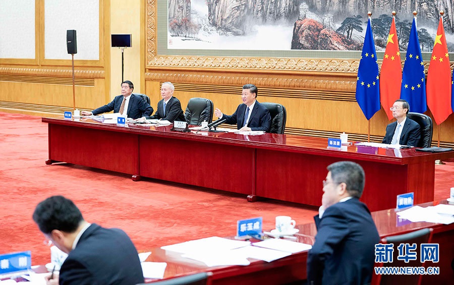 9月14日晚,國(guó)家主席習(xí)近平在北京同歐盟輪值主席國(guó)德國(guó)總理默克爾、歐洲理事會(huì)主席米歇爾、歐盟委員會(huì)主席馮德萊恩共同舉行會(huì)晤,會(huì)晤以視頻方式舉行。新華社記者李濤攝