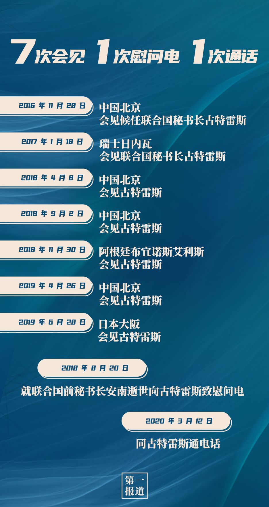 其中,習(xí)主席同聯(lián)合國(guó)“掌門(mén)人”的交往互動(dòng)最為頻繁,截至目前,習(xí)主席已7次會(huì)見(jiàn)聯(lián)合國(guó)秘書(shū)長(zhǎng)古特雷斯。今年,在全球暴發(fā)新冠疫情的特殊情況下,習(xí)主席還通過(guò)“電話(huà)外交”同古特雷斯保持溝通交流: