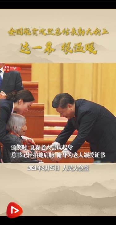 習近平在總結表彰大會上莊嚴宣告:“經(jīng)過全黨全國各族人民共同努力,在迎來中國共產(chǎn)黨成立一百周年的重要時刻,我國脫貧攻堅戰(zhàn)取得了全面勝利!”
