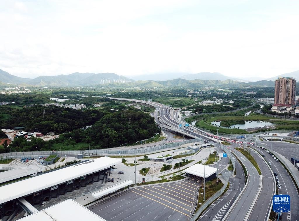 這是2020年8月26日拍攝的深港間第七座陸路口岸——蓮塘/香園圍口岸(無人機(jī)照片)。新華社記者李鋼攝