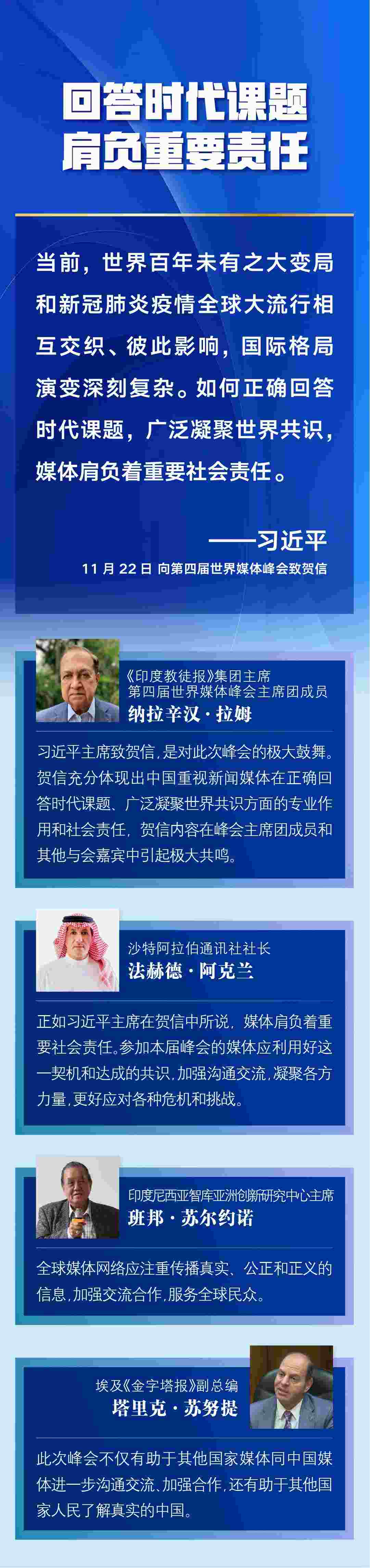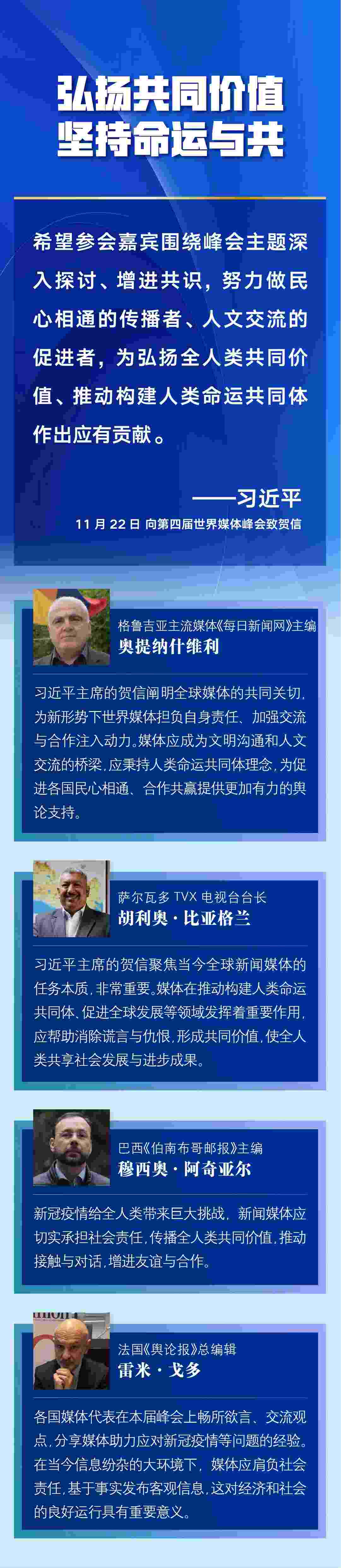 多國媒體人士認(rèn)為,習(xí)近平主席的賀信對全球媒體更好肩負(fù)社會責(zé)任、廣泛凝聚世界共識作出重要闡述,為新形勢下世界媒體加強(qiáng)交流與合作、弘揚全人類共同價值、推動構(gòu)建人類命運共同體注入新的推動力——