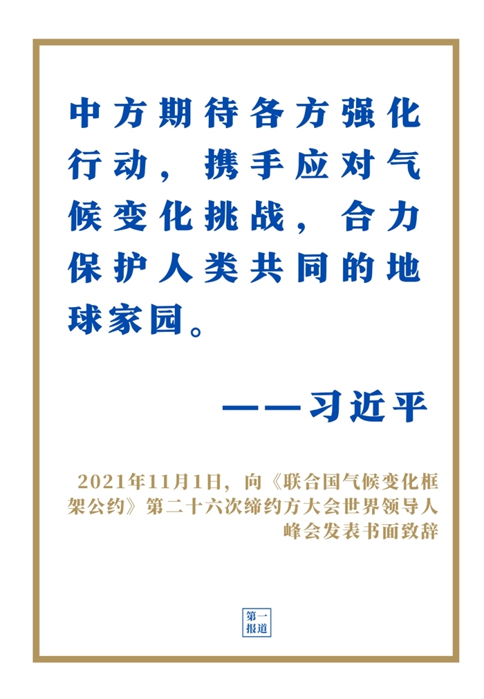 ——“應(yīng)對(duì)氣候變化等全球性挑戰(zhàn),多邊主義是良方?!?/strong>在《聯(lián)合國(guó)氣候變化框架公約》第二十六次締約方大會(huì)世界領(lǐng)導(dǎo)人峰會(huì)上,習(xí)近平主席強(qiáng)調(diào)“維護(hù)多邊共識(shí)”。