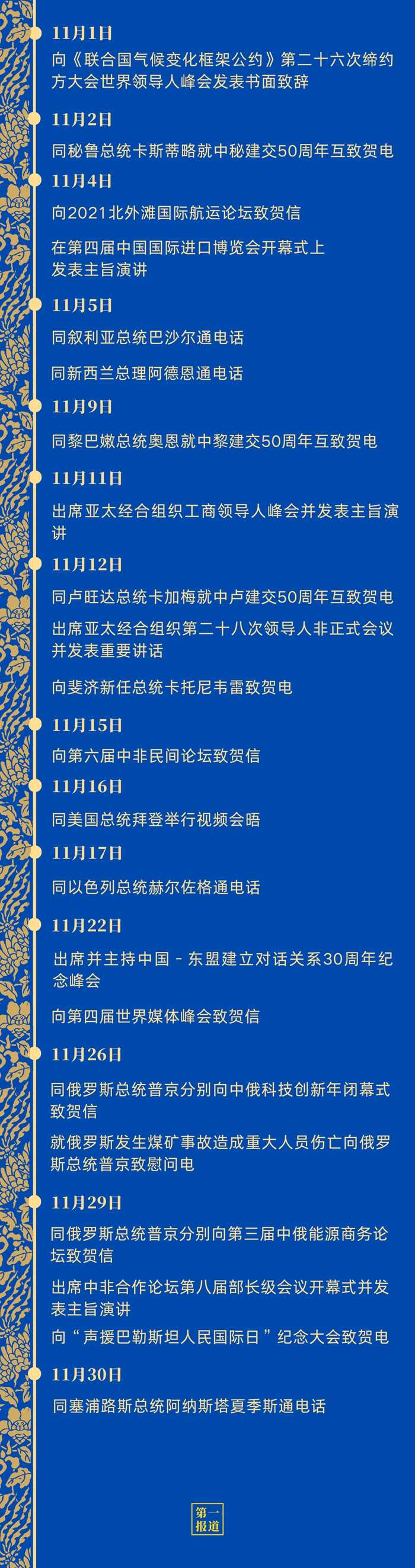 11月,中國(guó)元首外交活動(dòng)豐富、頻密,在雙邊關(guān)系、多邊合作、全球發(fā)展、共建家園四方面彰顯強(qiáng)大推動(dòng)力——